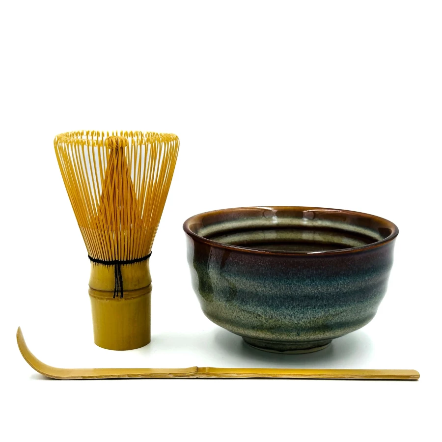 Podstawowy zestaw do matchy zawiera: chasen (bambusowa trzepaczka), chashaku (miarka), czarka do matchy. Całość w estetycznym opakowaniu – idealne na prezent lub własny rytuał!